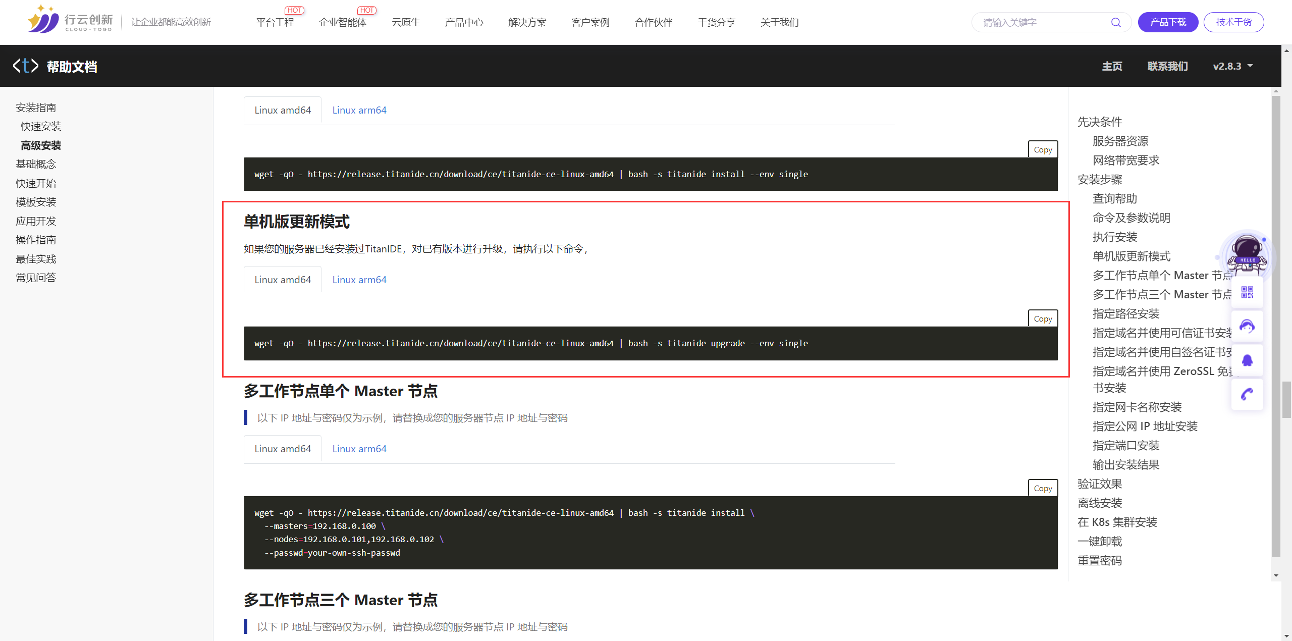 如您之前已经部署 TitanIDE,只需一行命令,即可将 TitanIDE 升级到最新版本: