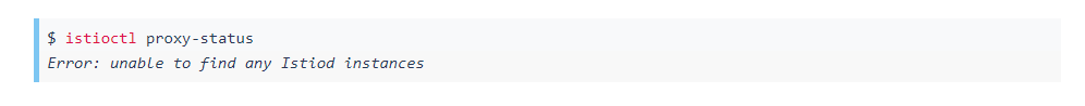 请注意,错误消息不仅说它无法访问该 istiod 服务,它还特别提到了它无法找到 istiod 实例。这是因为istioctl proxy-status实现需要检索的不仅仅是任何单个 istiod 实例的同步状态,而是所有实例的同步状态。当有多个 istiod 实例(副本)运行时,每个实例仅连接到网格中运行的服务代理的一个子集。该 istioctl 命令需要返回整个网格的状态,而不仅仅是由其中一个实例管理的子集。