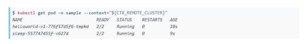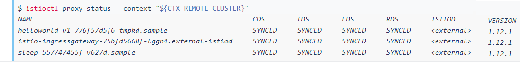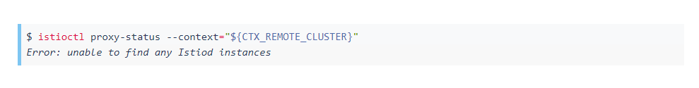 请注意,如果您尝试istioctl proxy-status在远程集群中运行,您将看到前面描述的错误消息:
